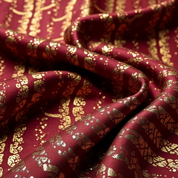 in rich burgundy and gold tones. Perfect for traditional attire, party